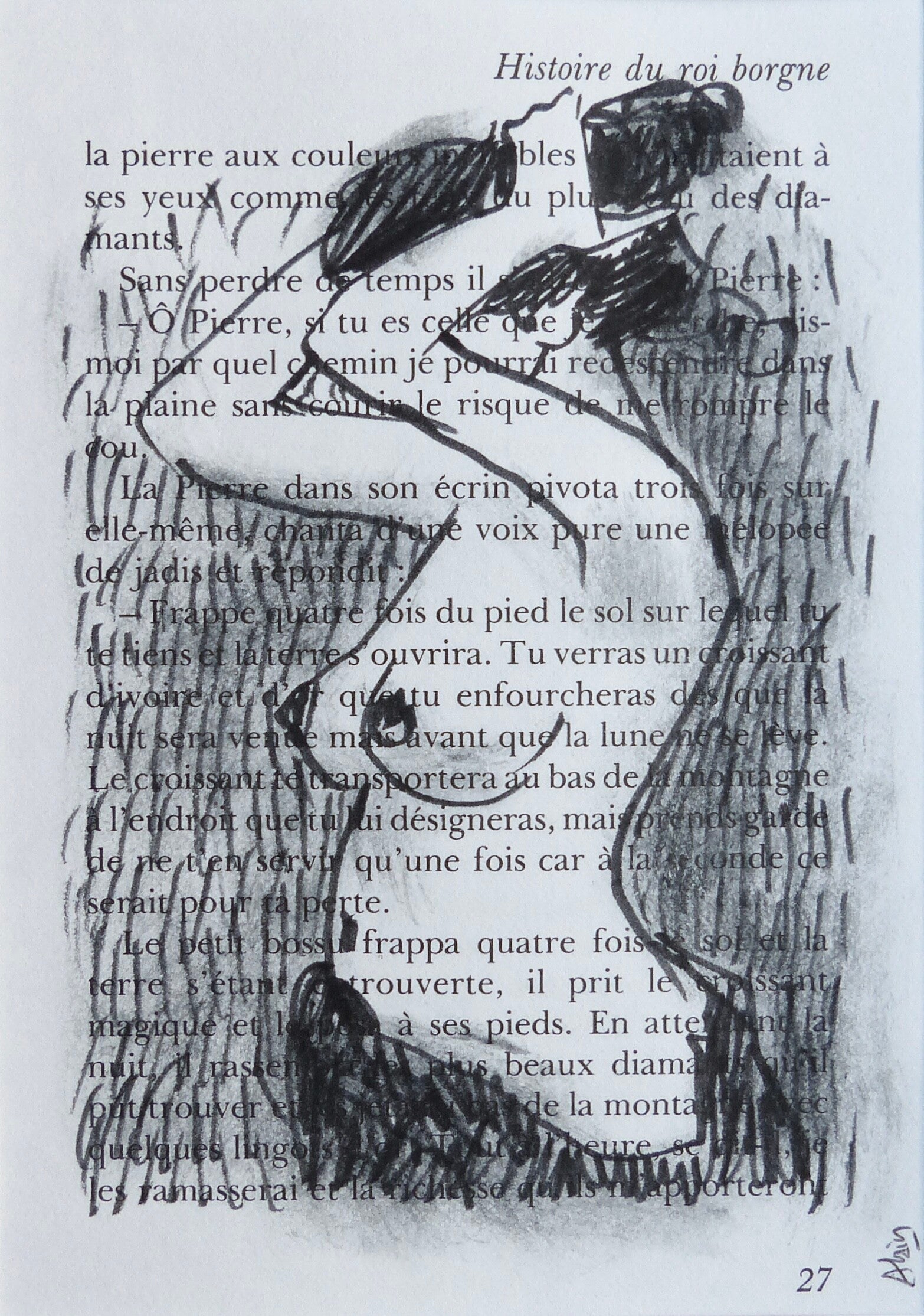 Dessin érotique à l'encre de Chine sur roman érotique 14x19 cm