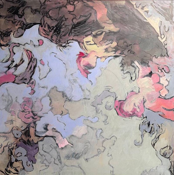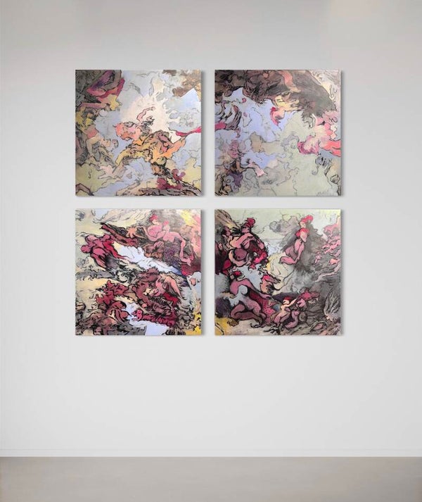 Quadriptyque composé de 4 toiles à l'acrylique et encre de Chine de 89x89cm chacune