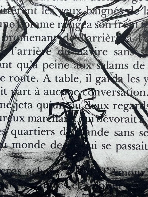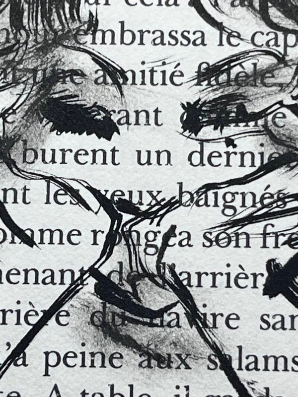 Dessin érotique à l'encre de Chine sur roman érotique 14x19 cm